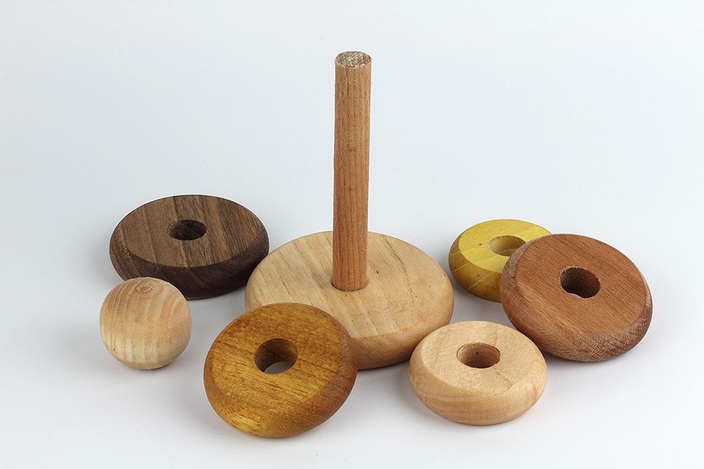 10 cm çapında 14 cm yüksekliğinde 6 katlı tamamı doğal ağaç hanoi kulesi