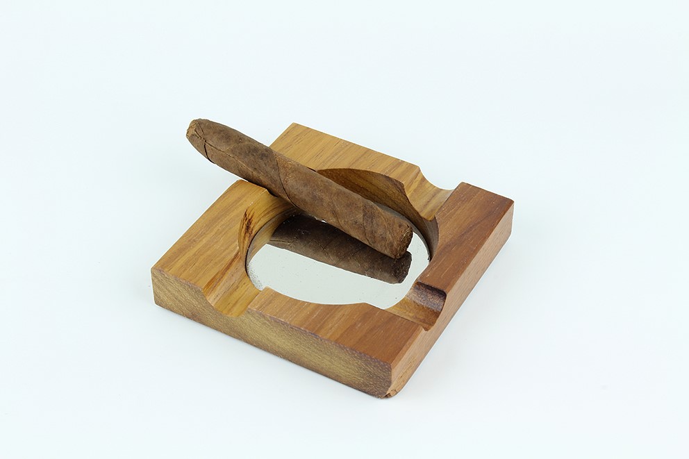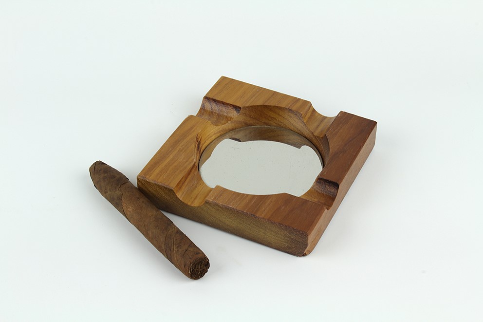 9,5 X 9,5 cm İreko ağacından, zemin paslanmaz çelik, puro ve sigara kül tablası