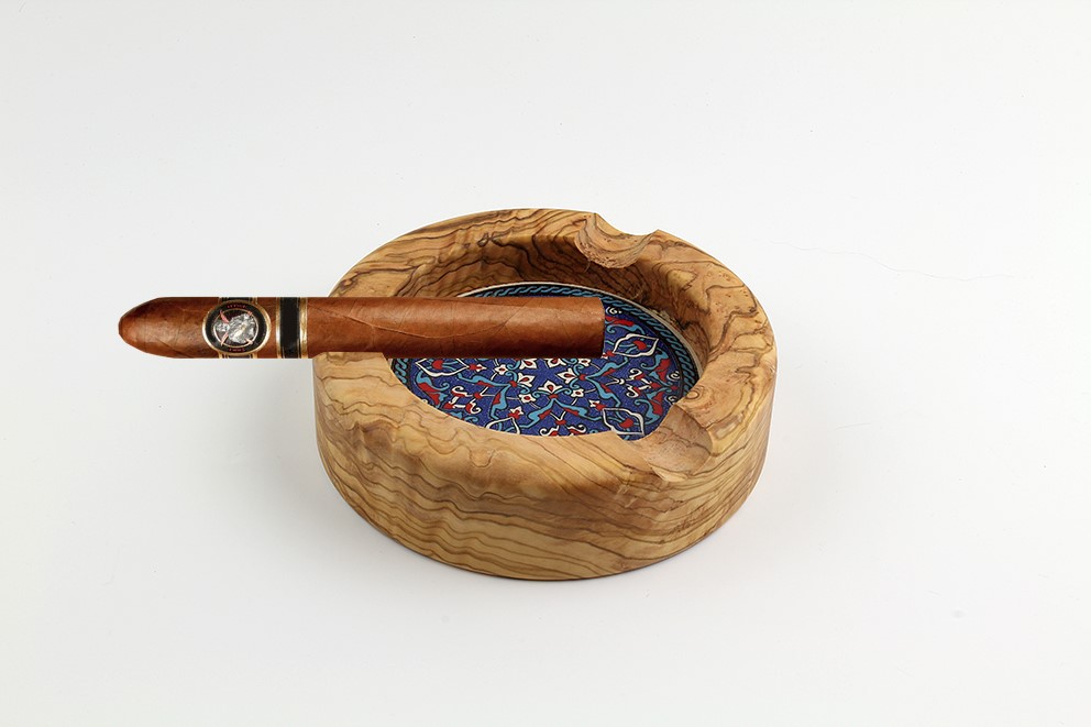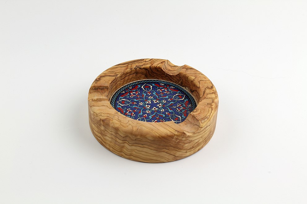 13 cm çapı 3,5 cm yükseklik içi el yapımı seramik, zeytin ağacı pro kül tablası