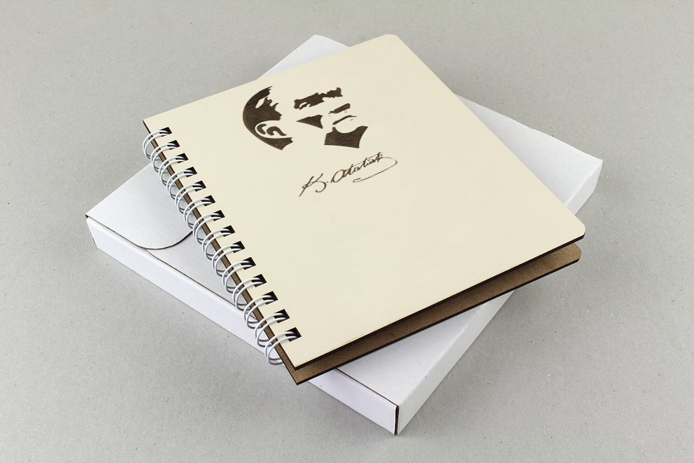 20 x 17,5 cm Atatürk portre kazıma 60 yaprak 120 sayfa kraft kağıt kutulu defter