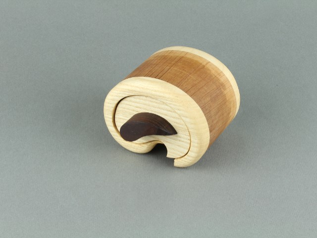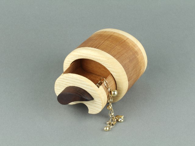 8,5 cm genişlik, 9 cm derinlik, 7 cm yüksekliğinde sapelli ve kiraz ağacından tamamı el yapımı özel tasarım kutu