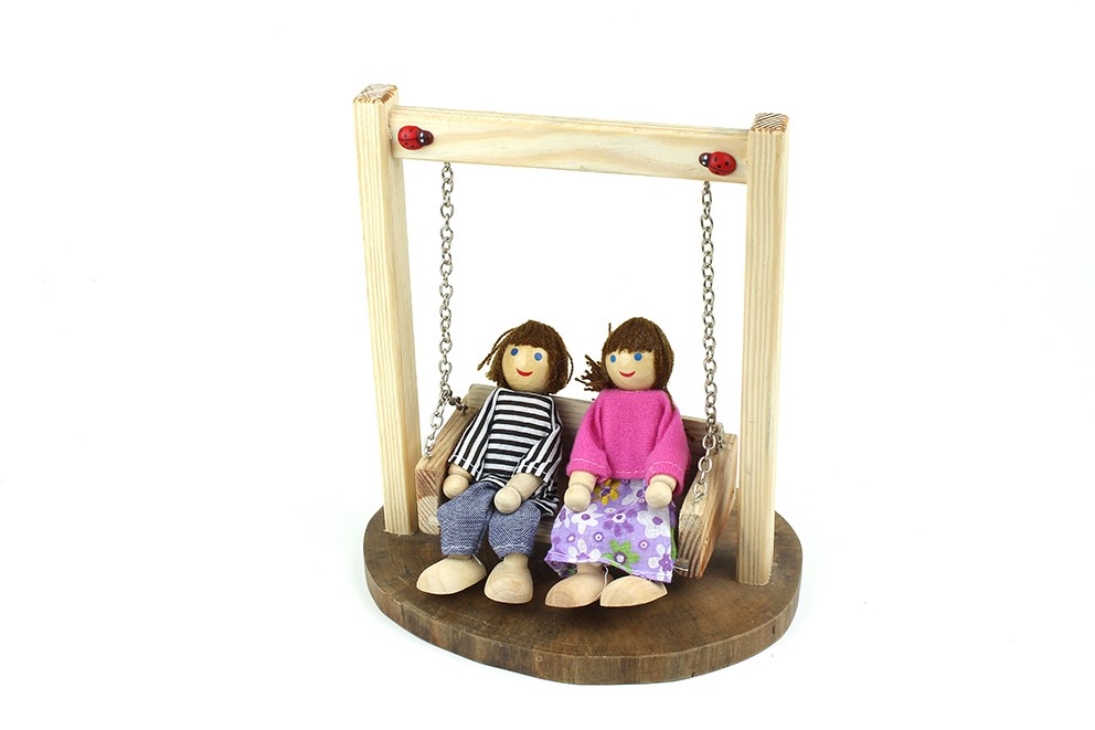 Doğal ağaç salıncakta, tamamı el yapımı insan figürlü karı koca