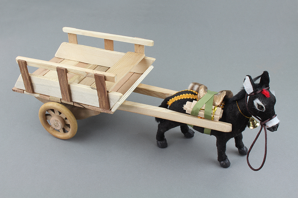 15 cm genişlik, 40 cm uzunluk, 15 yüksekliğinde ahşap eşşek arabası
