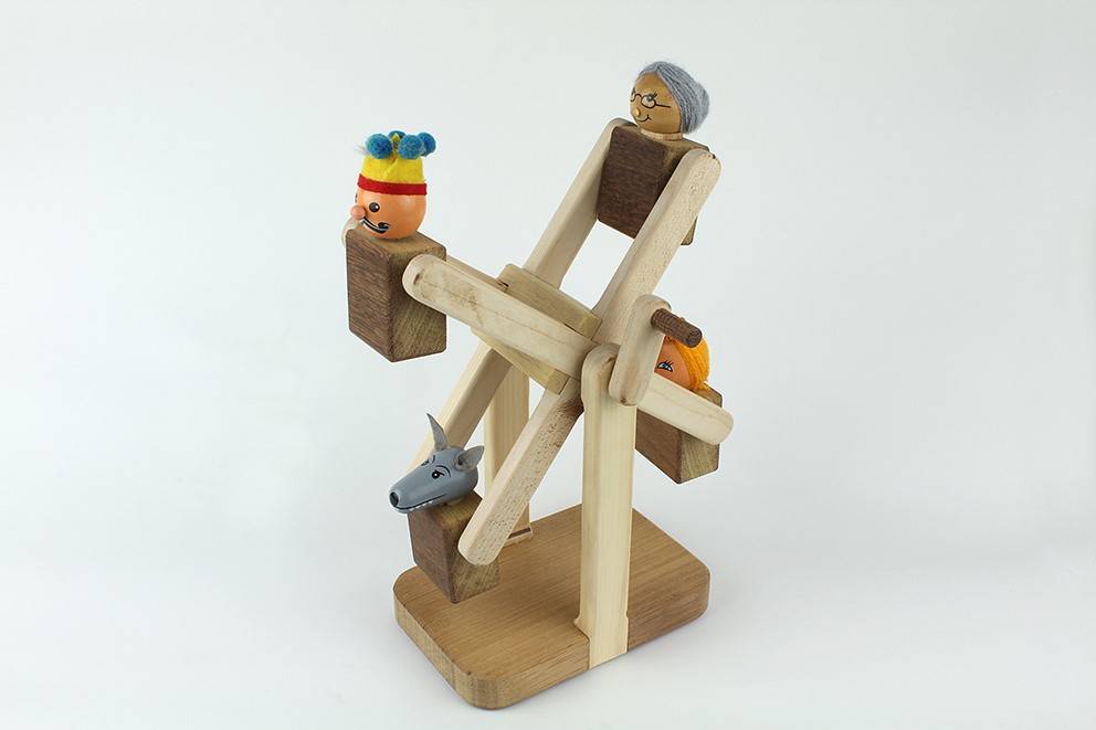 10 cm derinlik, 22 cm genişlik, 29 cm yüksekliğinde ahşap dörtlü dönme dolap