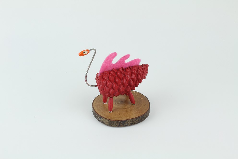 9 cm yüksekliğinde çam kozalak kırmızı dinazor (doğal ürün olduğu için ölçü değişkenlik gösterebilmektedir)