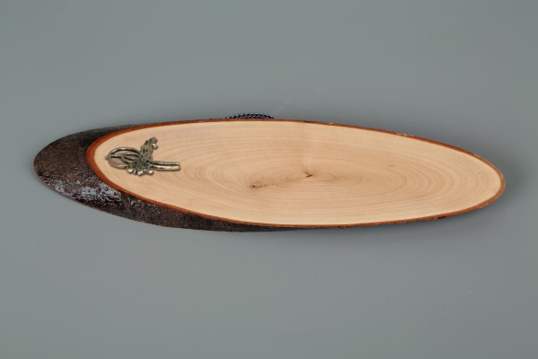 Ağaç duvar süsü doğal olması nedeniyle ölçü değişkendir üzeri dolgu vernikli, metal tuğralı, zincirli  duvara  asılabilmektedir.