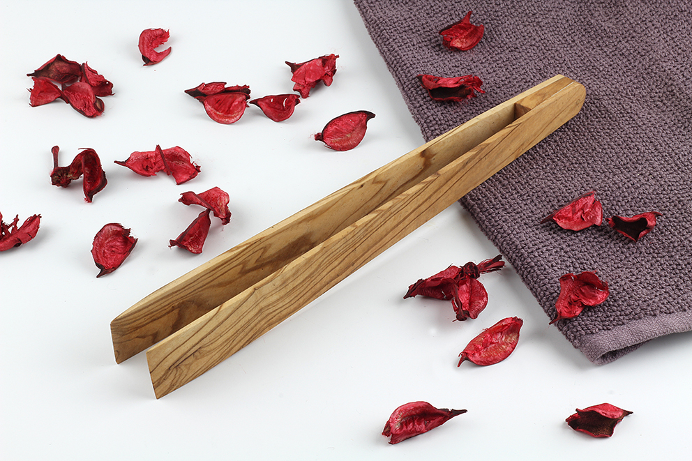 26 cm uzunluğunda zeytin ağacından maşa (doğal ağaç olduğundan ölçüler değişkenlik gösterebilir)
