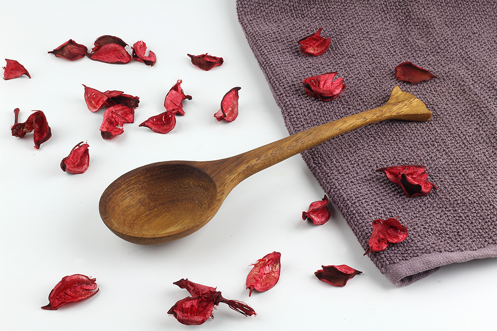 23 cm uzunluğunda iroko ağacından balık kuyruğu desenli kaşık (doğal ağaç olduğundan ölçüler değişkenlik gösterebilir)