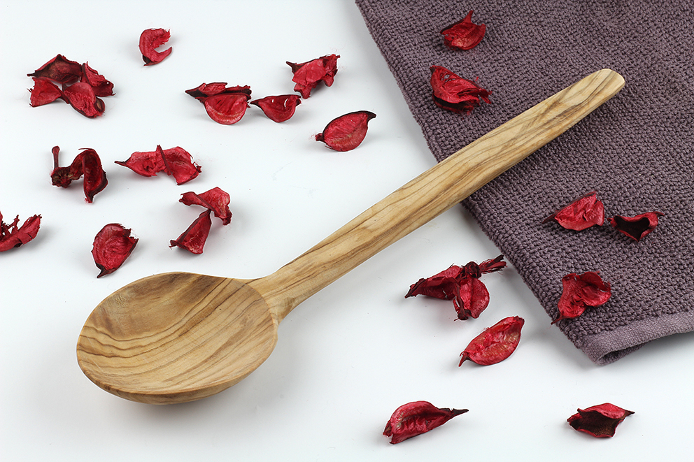 30,5 cm uzunluğunda zeytin ağacından kaşık (doğal ağaç olduğundan ölçüler değişkenlik gösterebilir)