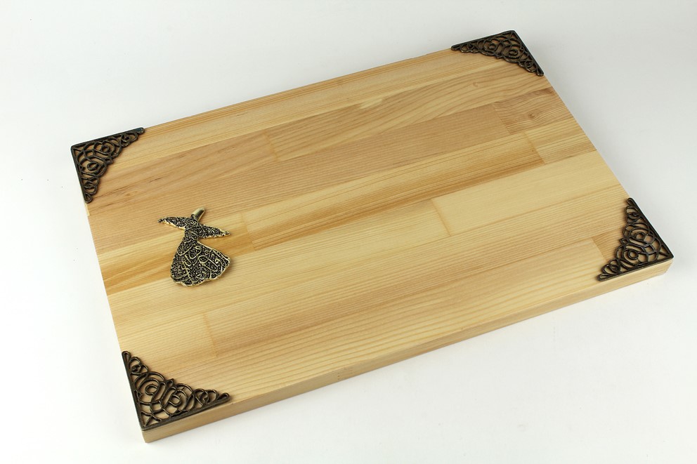 34 X 20 cm ölçü 18 mm kalınlığında ahşap, dört bir köşesi metalli ve metal Semazenli, arkasında asma aparatlı, kutulu