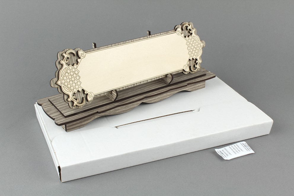 23 x 6,5 x 10 cm ölçüsünde arkası kısmı kalemlikli, nem koruyuculu, kutulu, alize masa üstü isimlik