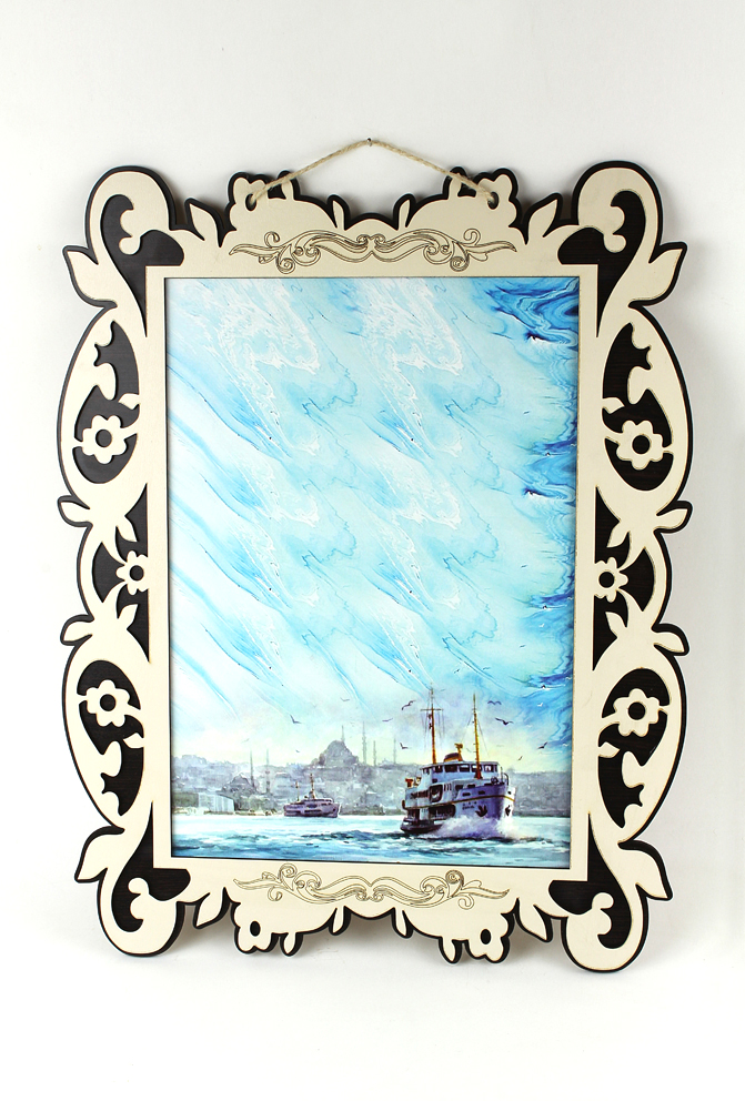 Ay Yıldız Fonlu Ahşap Çerçeve