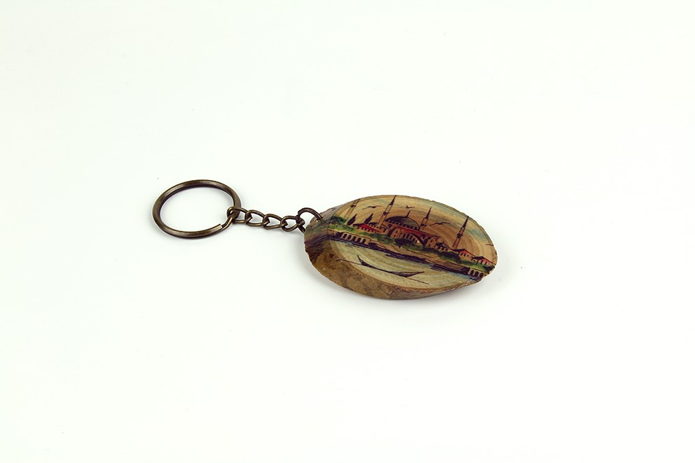 Doğal ağaç anahtarlık bir tarafı renkli İstanbul baskılı, diğer tarafı boş vernikli isim yazmaya uygundur. Doğal ağaç oluşundan ölçüleri sabit değildir.