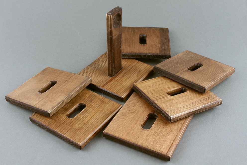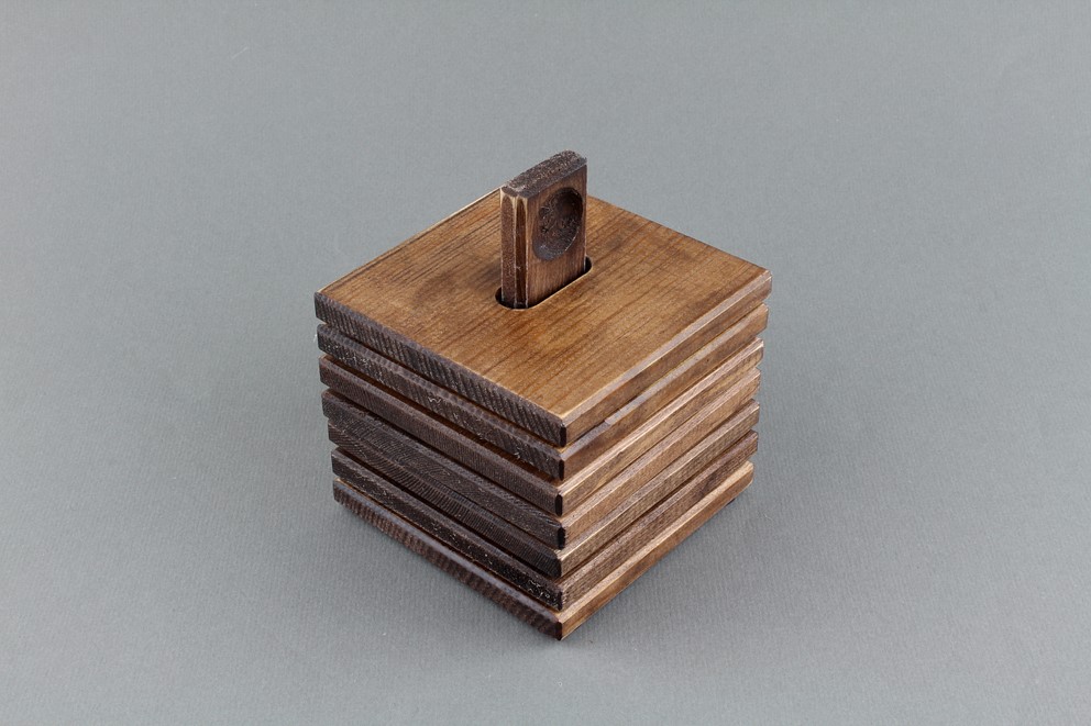 9,5 x 9,5 cm kare kahve rengi boyalı çam ağacından 6 adet stantlı bardak altlığı