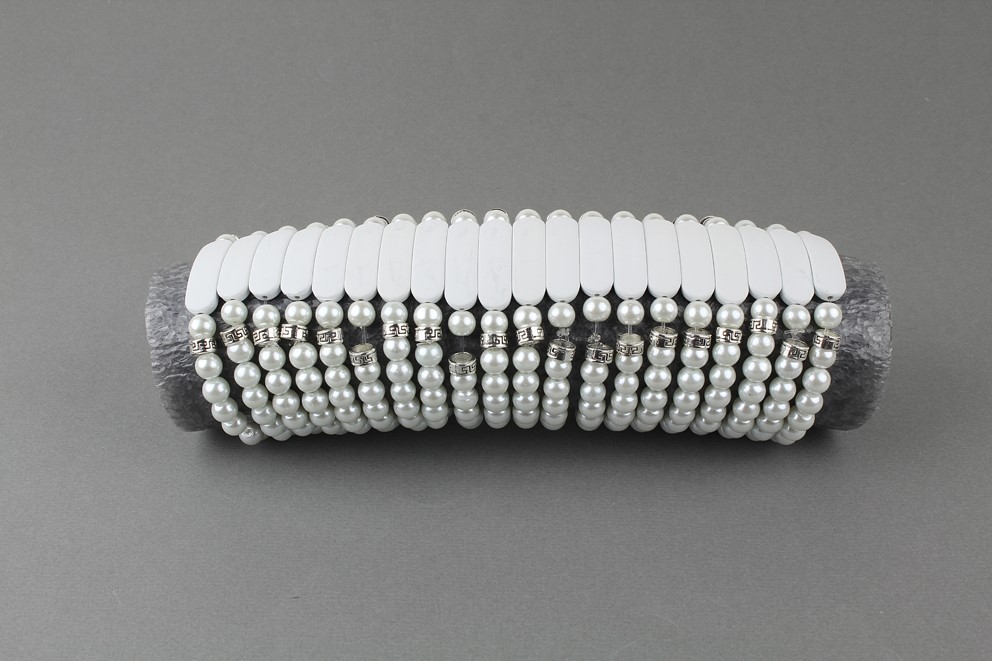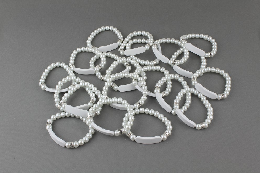 20 adet 3,5 cm beyaz yazma alanı, beyaz cam boncuk, misina lastikli, stantlı bileklik
