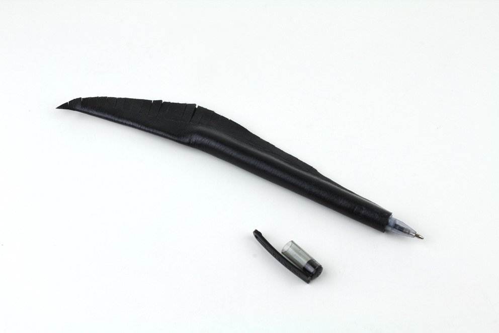 24 cm uzunluğunda siyah hakiki deri tükenmez kalem