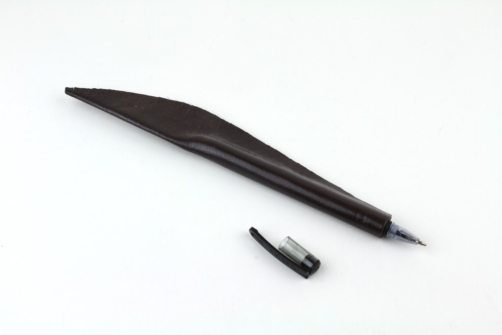 24 cm uzunluğunda koyu kahve hakiki deri tükenmez kalem