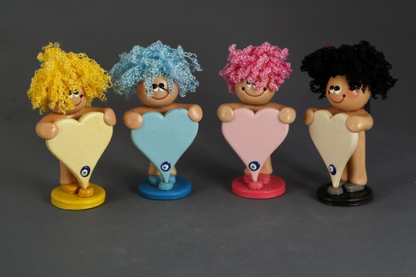 11 cm  yüksekliğinde renkli kız  kalpli hamur bebekler, ürün kutuludur.