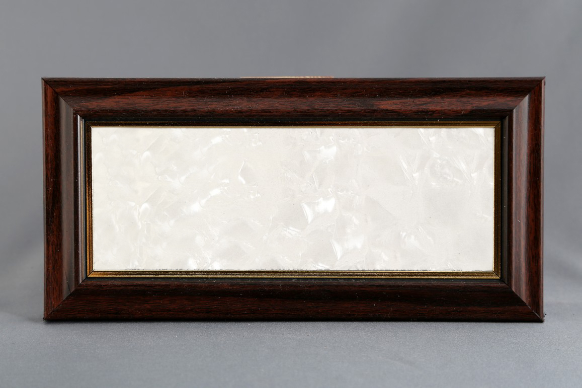 18,5 x 7,5 cm sedef yazı alanı, 26 x 14 cm bitmiş ölçüde sedef çerçeve