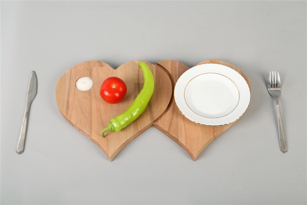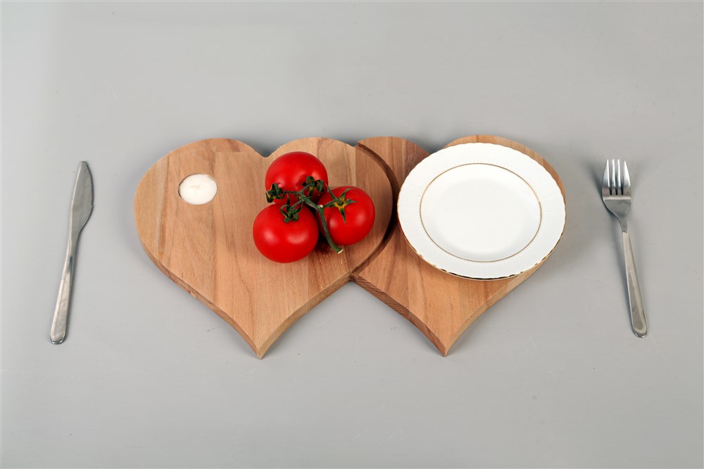 42 cm genişliği 25 cm yüksekliğinde ahşap çift kalpli mumlu sunum