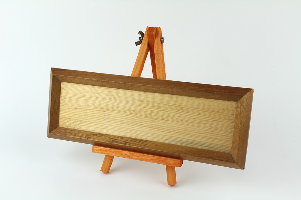 27 cm x 9,5 cm iroko ağacı çerçeve, 20 cm yükseklik,  12 cm genişlik, boyalı fırınlanmış cam ağacından şövale