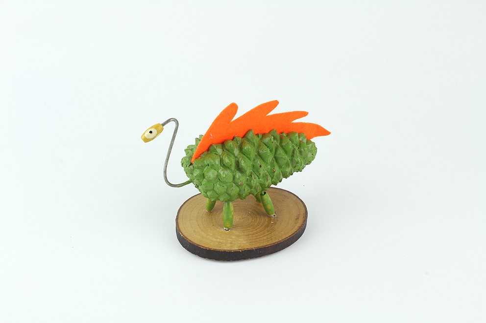 9 cm yüksekliğinde çam kozalak yeşil dinazor (doğal ürün olduğu için ölçü değişkenlik gösterebilmektedir)