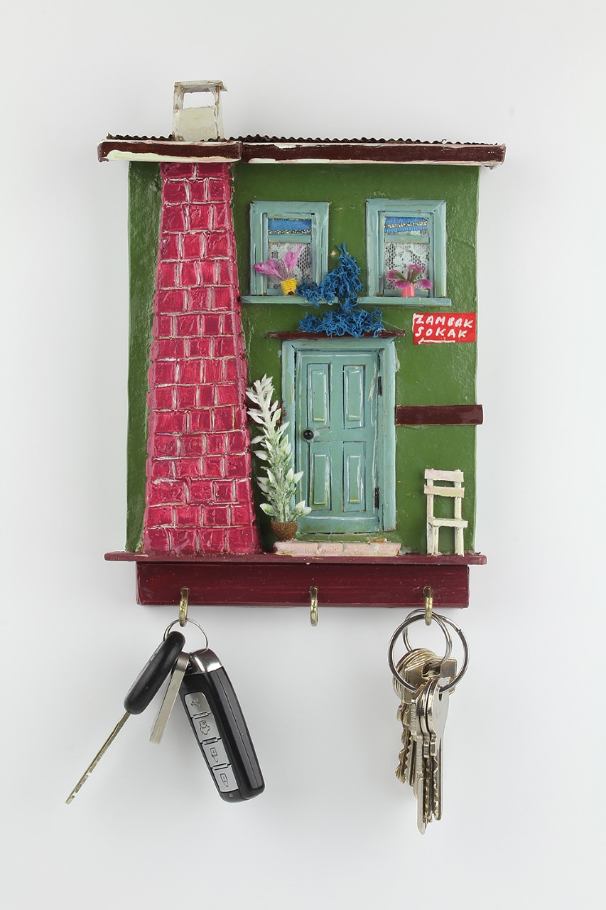 22 cm yükseklik 15 cm genişlik tamamı el yapımı yeşil ev anahtarlık