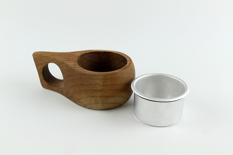 6 cm yüksekliğinde 14 cm genişliğinde, ceviz kuksa bardak
