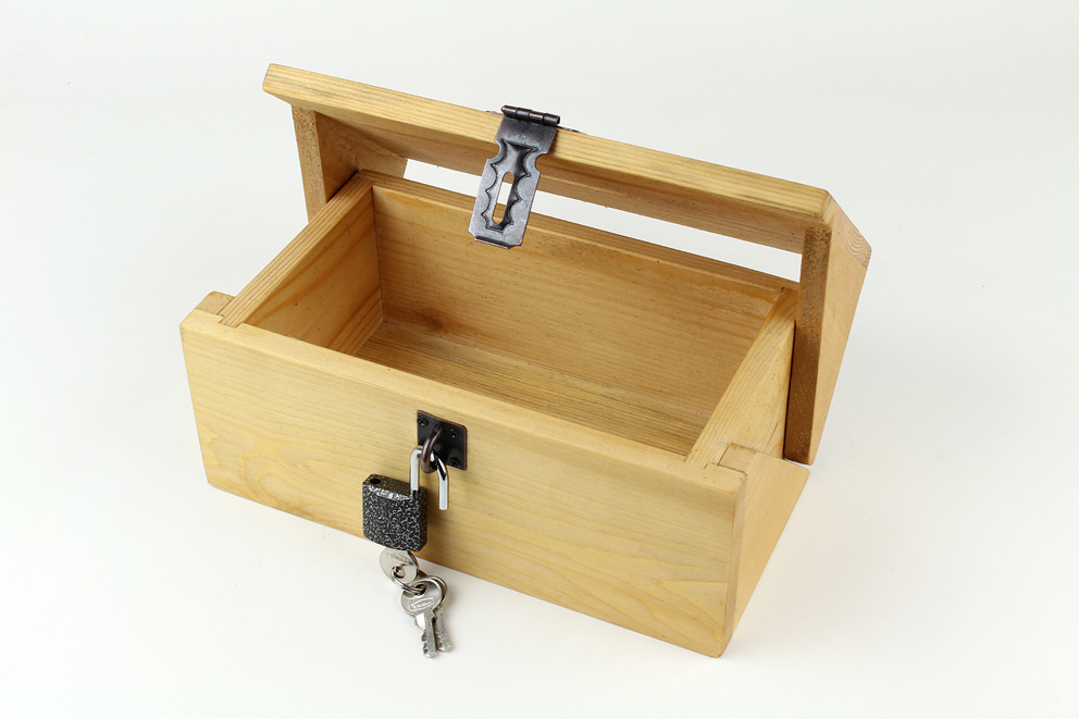 19 cm genişlik, 8,5 cm yükseklik, 10,5 cm derinlik, çam ağacında kilitli bahşiş kutusu