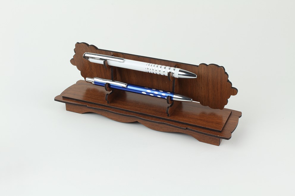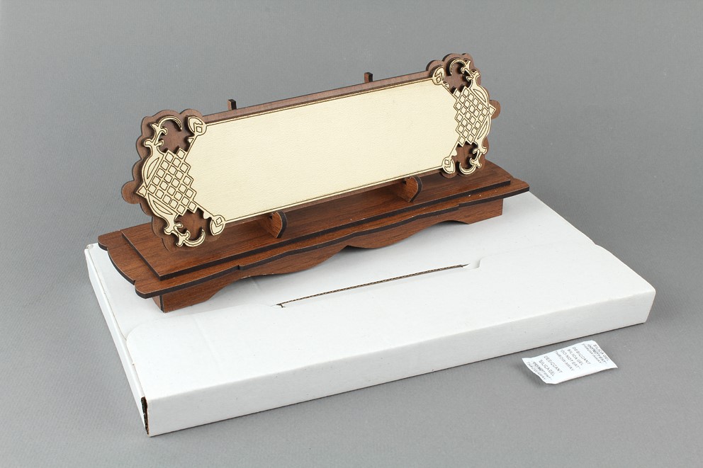 23 x 6,5 x 10 cm ölçüsünde arkası kısmı kalemlikli, nem koruyuculu kutulu ceviz rengi masa üstü isimlik